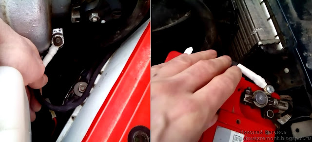 Тонкий минусовой провод соединен с корпусом машины рядом с аккумулятором. Он играет роль источника энергии необходимого всем потребителям, оборудованным в машине. Для проверки, также необходимо убедиться в степени натяжения гайки как с кузовом так и к клеммой аккумулятора.