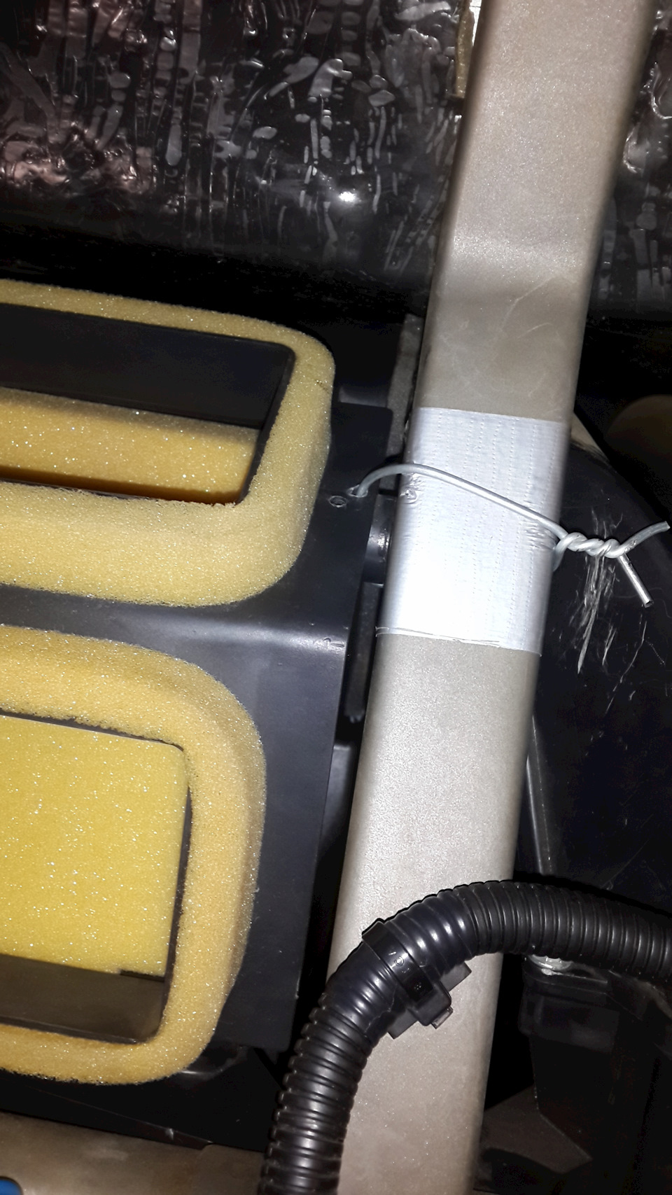 Первый — это короткий патрубок (уже упоминал), короткий почти без изгибов патрубок нужно воткнуть в строго фиксированном промежутке, его почти невозможно изогнуть, предлагается играть им как на гармошке)) — возможно не стоит слишком рано фиксировать печку или зови знакомого качка)), ну кое как все же воткнул самостоятельно!