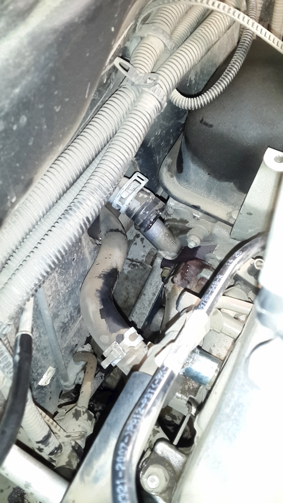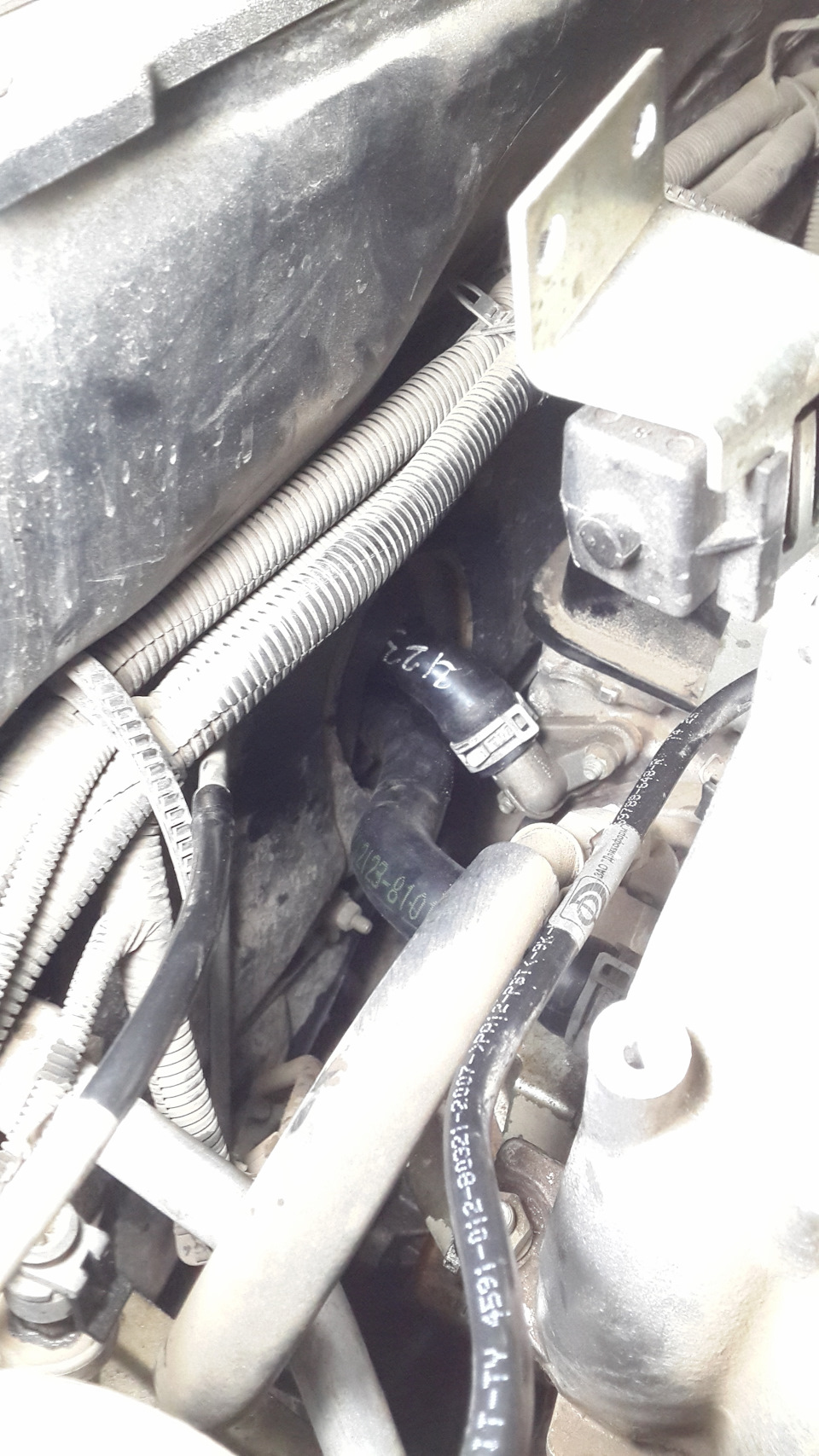 Отсоединяем патрубки (особенно вас порадует короткий:)), опускаем максимально вниз и сливаем сколько возможно с них антифриз. Я снимал патрубки с помощью большой плоской отвертки, если менять на новые, то еще проще — можно просто срезать! Но вот что бы поставить короткий патрубок обратно, придется изрядно попотеть))