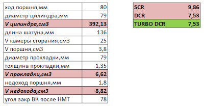 Таблице примерного увеличения мощности двигателя при повышении степени сжатия: