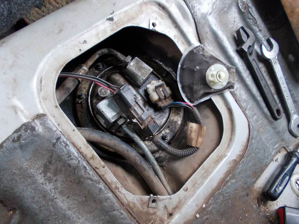 Добраться до разъёма на моторчике непросто – надо снимать модуль бензонасоса, открутив 8 гаек по периметру.