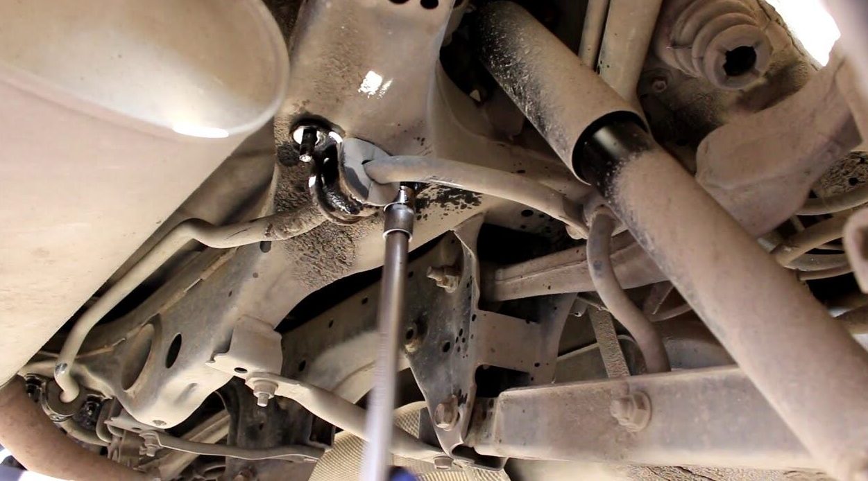 Сегодня решил снимать стабилизатор поперечной устойчивости, проверять стойки. Открутил втулки и крепления стоек снизу, и что-то меня надоумело заглянуть в тягу подвески.