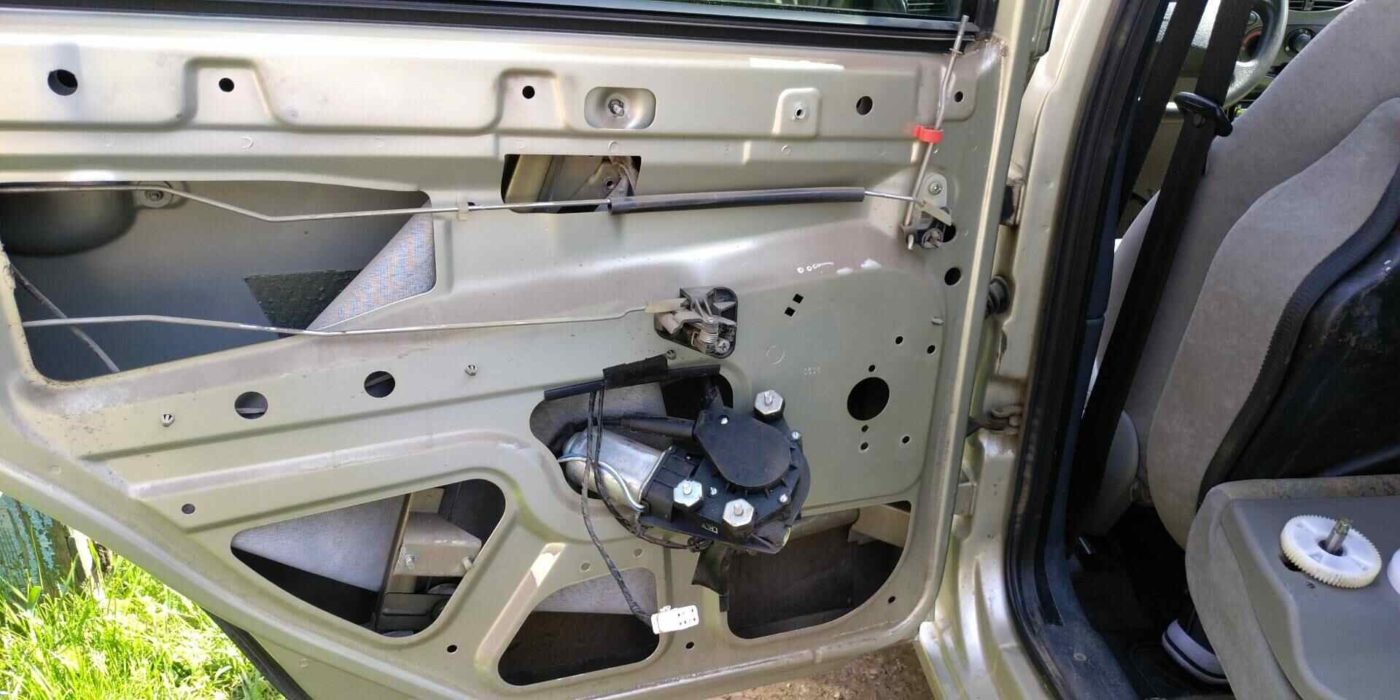 Если же переключатель рабочий, тогда следует перейти к следующему этапу. Для этого демонтируют дверную обшивку в зависимости от того, с какой из сторон стеклоподъемник не работает так, как нужно. После демонтажа будет виден стеклопакет, с также механизм и мотор с проводами.