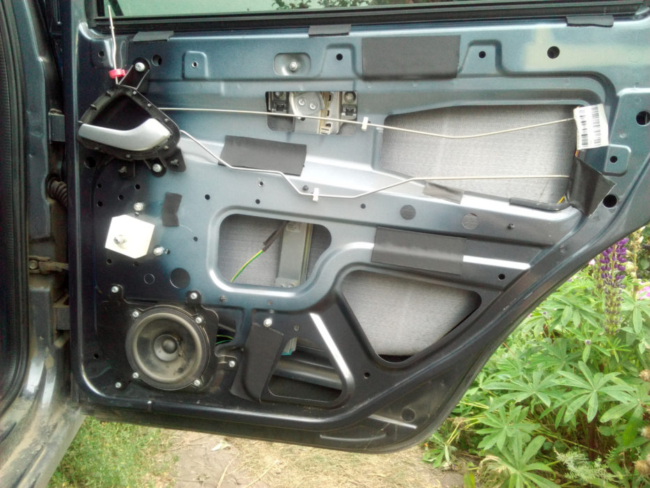 - автовладелец решил улучшить шумоизоляцию дверей машины и проклеить внутренние дверные полости специальным шумопоглощающим материалом;