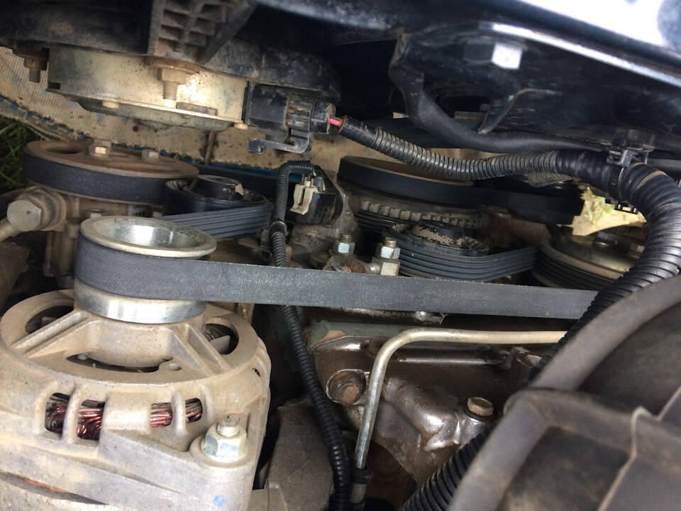 - Теперь нужно оттянуть ослабленный ремень от шкива насоса ОЖ, затем, проворачивая переднее колесо, от шкивов генератора и коленвала;
