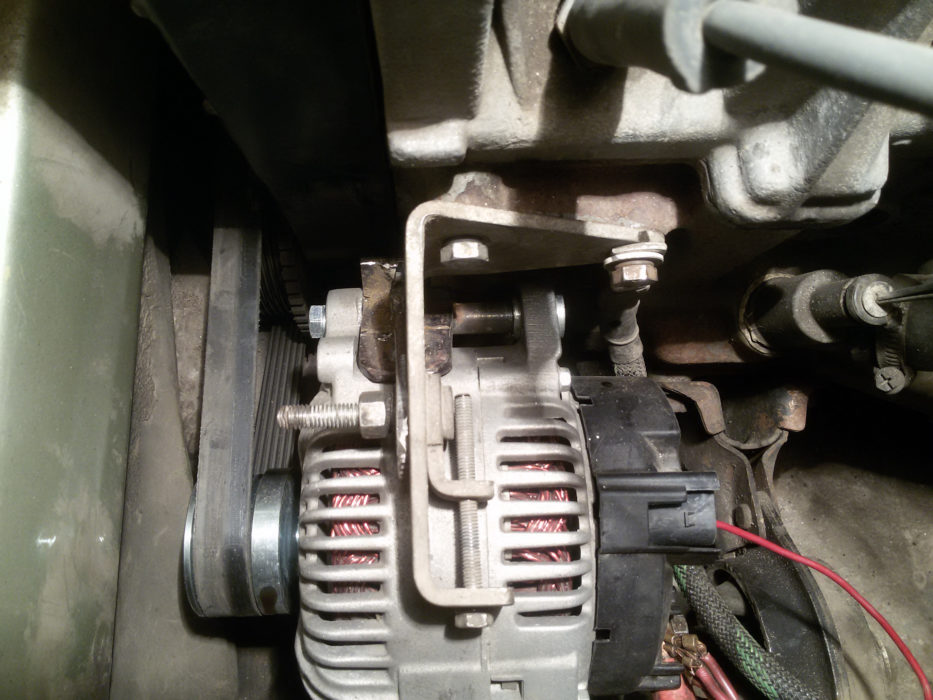 До конца откручиваем нижний болт крепления генератора, используя ключ на 13, верхнее крепление и натяжную планку.