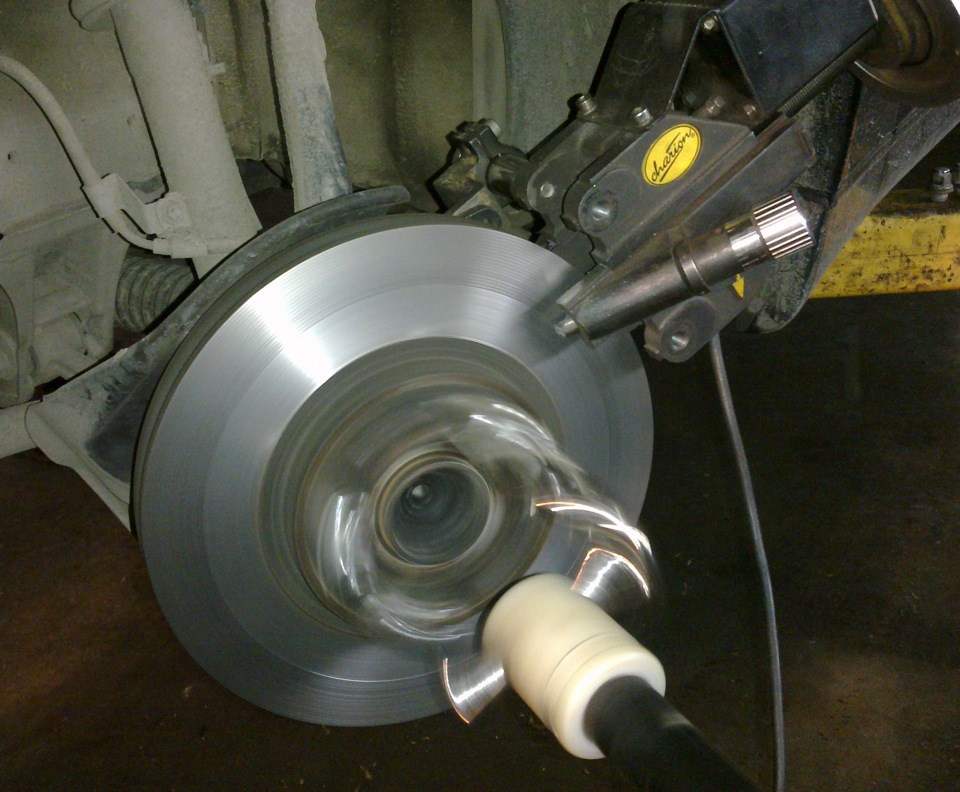 Эффект достигается незначительный, и только на некоторое время восстанавливает поверхность тормозного диска. Потому предпочтительнее отдать узел в руки профессионалов. В автосервисах есть специальный стенд, позволяющий без снятия провести обработку изделия.