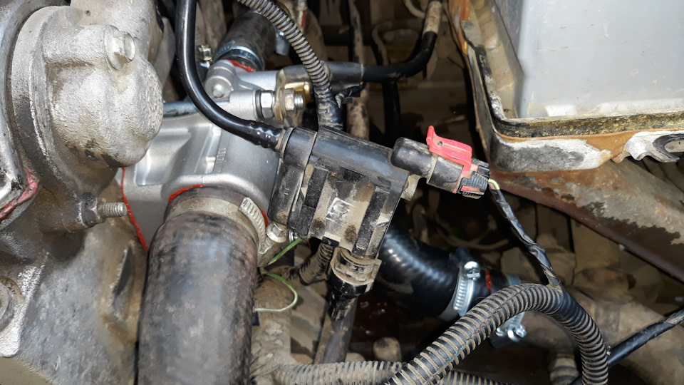 Если вы всё сделали верно, то неисправный термостат успешно снят. Теперь нужно очистить от скопившейся грязи место, где он стоял. Тут вам пригодится заготовленная заранее ветошь. На очищенное место нанесите герметик и подождите минут 15, чтобы он застыл. После этого можно поставить новый термостат. Не забудьте вернуть на место температурный датчик и подключить массовый провод с помощью болта и шпильки. Потом соберите всё в обратном порядке.
