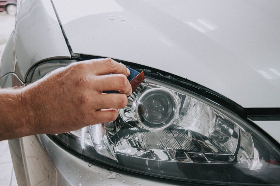 - Обклейте малярным скотчем все поверхности, которые граничат с фарами.