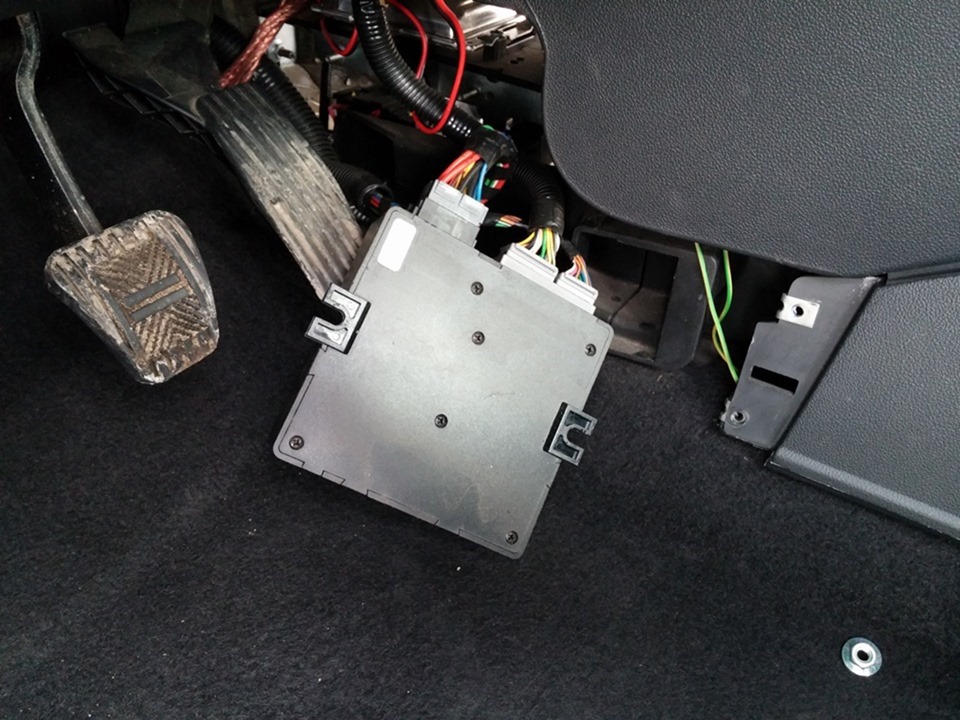 Вооружившись всем необходимым, откручиваем аккумулятор и снимаем защиту с приборной панели. Капризный иммобилайзер будет расположен за элементами управления отоплением, неподалеку от магнитолы. Внешне девайс выглядит неброско, как небольшая черная коробочка размером 5х10 см. После этого начинается самое сложное.