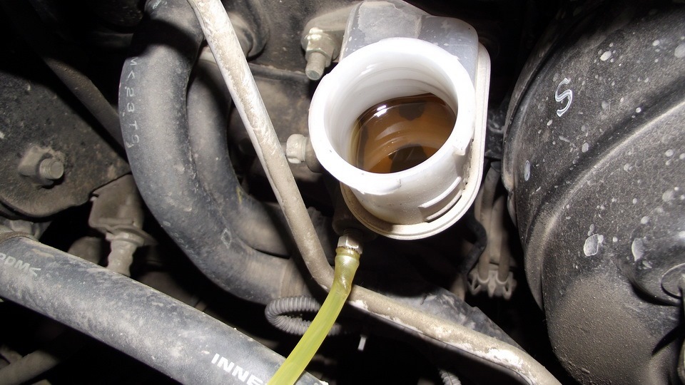 Ключом на 10 из системы сливается отработанная автожидкость. Вероятность того, что в сцепление или гидропривод попадет воздух, велика, поэтому опустошают их не полностью. В специальную емкость автомобиля заливают свежую жидкость до уровня, указанного на корпусе.