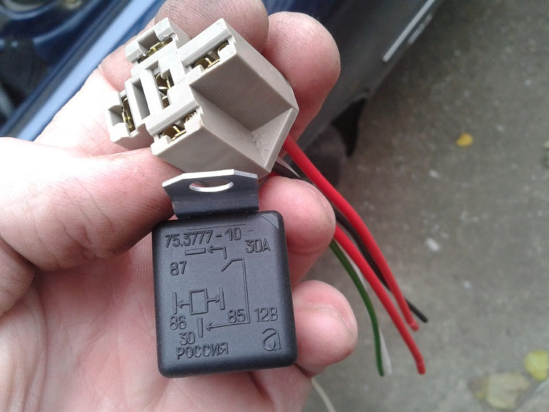Реле необходимо для снижения тока в проводах, питающих противотуманные фары, во избежание их расплавления. Оно имеет 4 контакта, два коммутирующих и два управляющих, иногда используют пятиконтактное устройство. Обмотка возбуждения должна иметь сопротивление не менее 70 Ом, при меньшем значении возможно превышение тока и выход из строя предохранителя. Сила тока реле составляет 30 А, возможно использовать и 70.