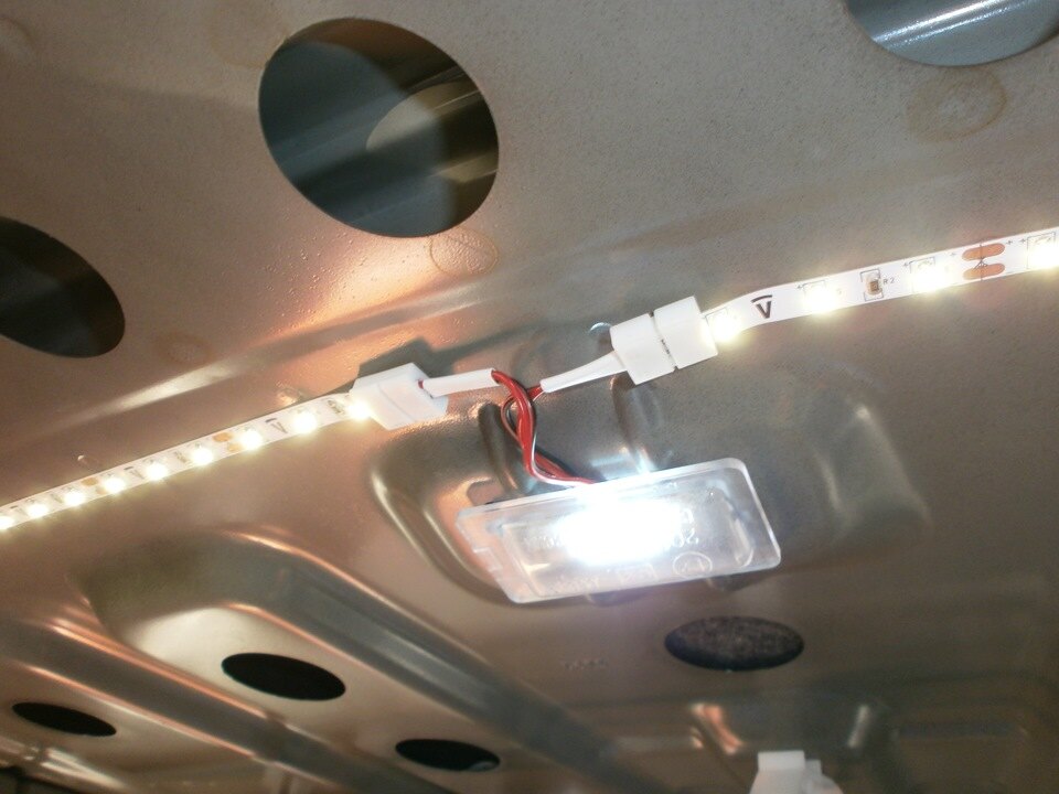 Положительная сторона такого включения – светодиоды прослужат долго, а их кристаллы никогда не перегреются от перенапряжения. Отрицательная сторона – при значениях напряжения ниже максимального, снижается светоотдача, а при перепадах у такой подсветки появится эффект «тускло — ярко». Если яркость свечения LED-ленты в авто не является первостепенным фактором, то данный вариант подключения можно взять на заметку.