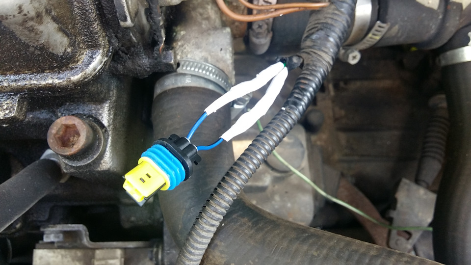 Датчик температуры, как правило, устанавливается между головкой блока цилиндров и термостатом. Он имеет два контакта.