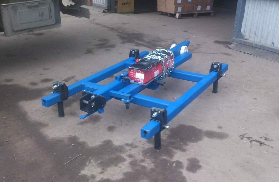 - Этап монтирования стойки и тянущих элементов. Мощность гидравлических устройств заводского типа должна составлять около 2000 кг. Крепить вытягивающие элементы можно на накладку из швеллера, поставленную на каркас. Дальше просверливаются в раме в нужных местах, чтобы можно было поставить тянущий механизм в необходимую точку в процессе работы.