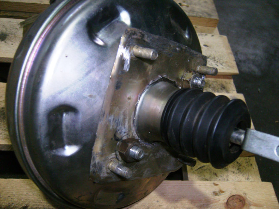 Это устройство с круглым корпусом, который поделен на 2 части: вакуумную и атмосферную. Разделяет эти части диафрагма. Вакуумная камера соединена с впускным коллектором посредством обратного клапана. Этот клапан создаёт в камере разрежение. А к атмосферной камере подключён следящий клапан, который активируется после нажатия педали тормоза, в результате чего вакуумная камера соединяется с атмосферной.